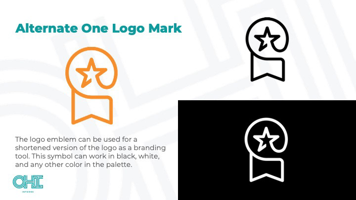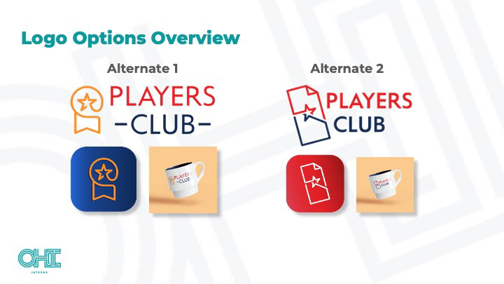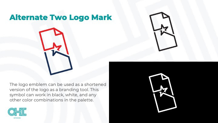 A deck designed by Pearl Stockwell & myself during an internship to present two logo options to the client.